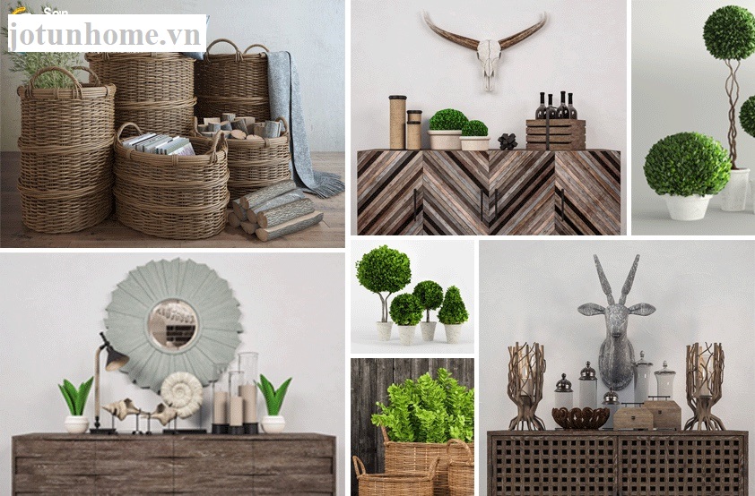 Bên cạnh đó, căn phòng mộc cần sử dụng một số vật dụng trang trí bằng gỗ hay mây, tre ( gợi nhớ đến hình ảnh của cây cỏ ), sử dụng thêm cây xanh trang trí cho không gian. Hạn chế sử dụng các vật bằng đá, gốm, sứ hay đất nung ( mộc khắc thổ )