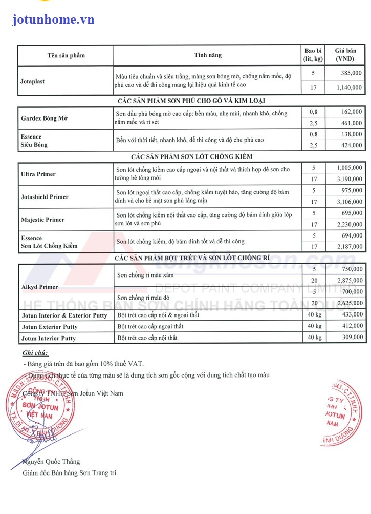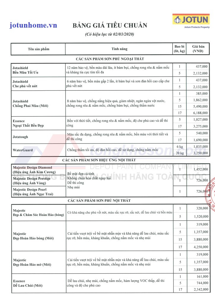 Xem thêm Bảng giá Sơn Jotun mới nhất tại đây